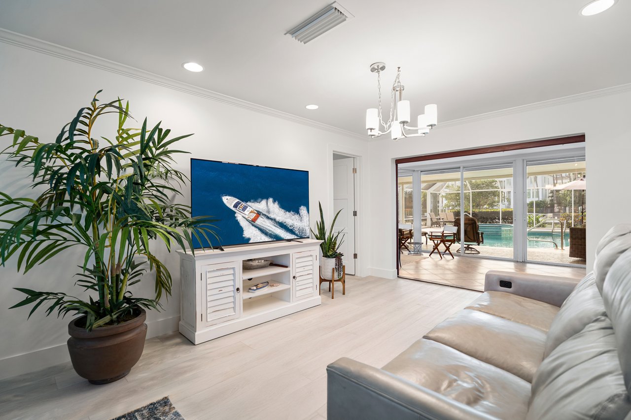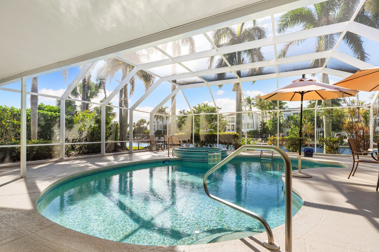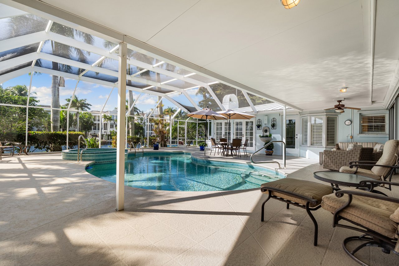 Framed by long, southwest-facing water views, this Coquina Sands waterfront residence enjoys a tranquil setting along the quiet enclave of Hurricane Harbor Lane. Boasting approximately 150 feet of water frontage and sunsets year-round, the property is set on just under half an acre and offers an exceptional sense of space and privacy, with expansive water vistas as a stunning daily backdrop. Thoughtfully oriented to maximize its setting, the home features a light and bright interior, with main living areas opening toward the water to create a seamless indoor-outdoor connection. Outdoors, a spacious pool area is ideal for relaxing or entertaining, while a private dock & seawall built in 2020 invites boating and paddle boarding adventures. Enhanced by a metal roof, newly refreshed interior and a highly desirable lot shape and size, the property also presents endless future development opportunities. Ideally located just moments from the beach, as well as Naples’ premier dining and shopping, this is a rare opportunity to enjoy peaceful waterfront living in one of the Naples more desirable coastal neighborhoods.
