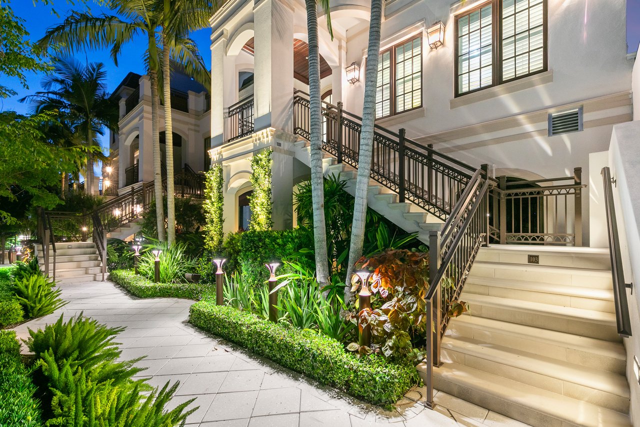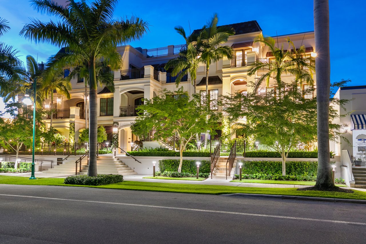 Steps from the boutique shopping and dining of Crayton Cove and offering nearly 5,000 square feet of living space, this 2019-built townhouse is an exceptional option for both part-time and full-time Naples living. Blending the scale of a single-family home with the lock-and-leave convenience of a condominium, Le Petite Trianon features an attached two-car garage, private elevator, refined finishes, and two levels of light-filled living framed by impact glass.