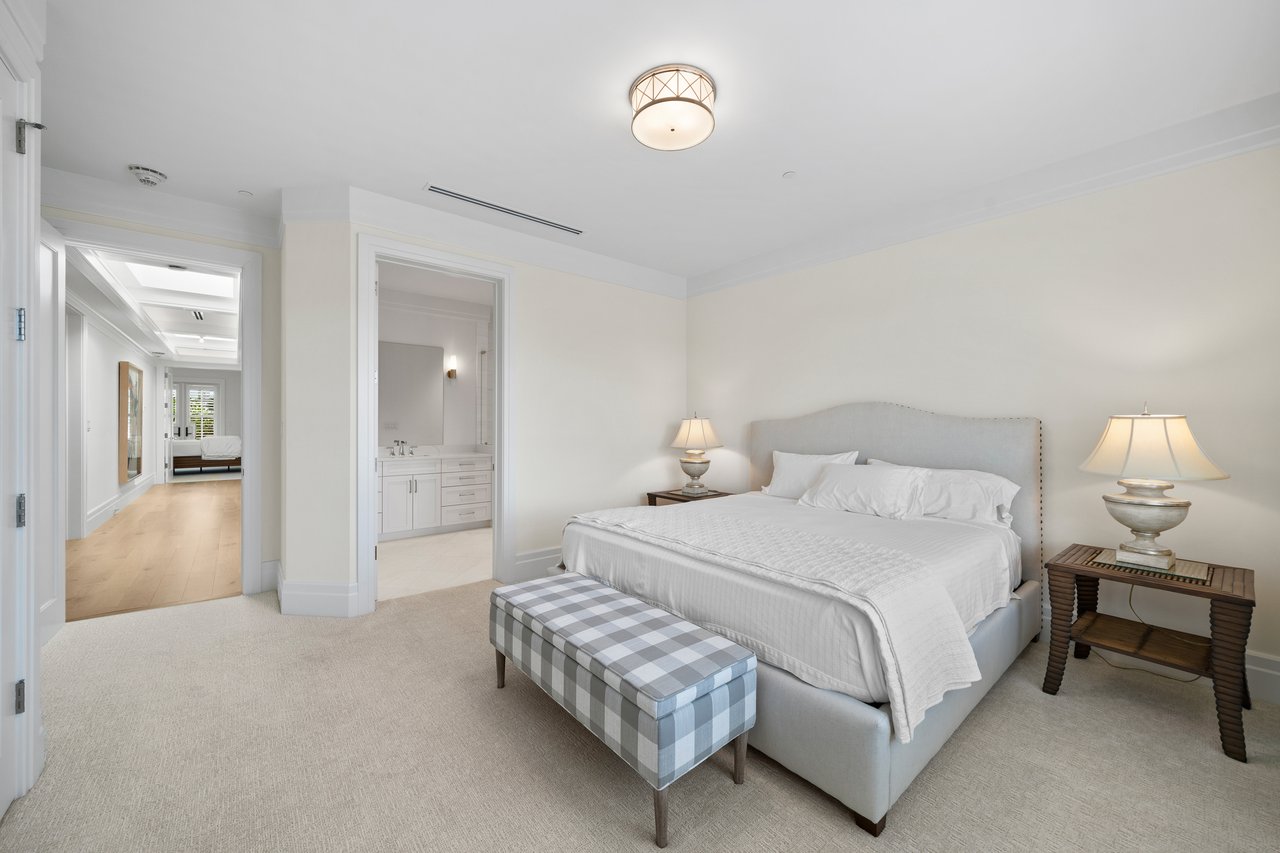 The upper level is home to the impressive primary suite, designed for ultimate privacy with dual baths, separate vanities, a soaking tub, walk-through shower, and a generous closet—ideal for those who appreciate their own space. This level also includes a convenient laundry room and two ensuite guest bedrooms, each with access to an open-air balcony.
