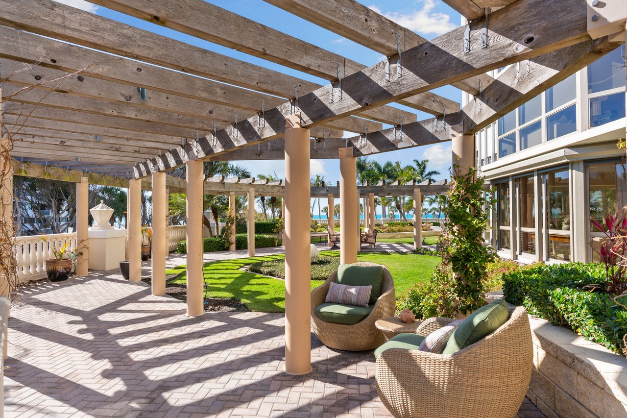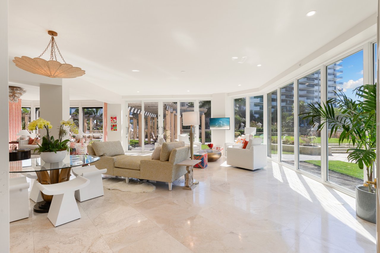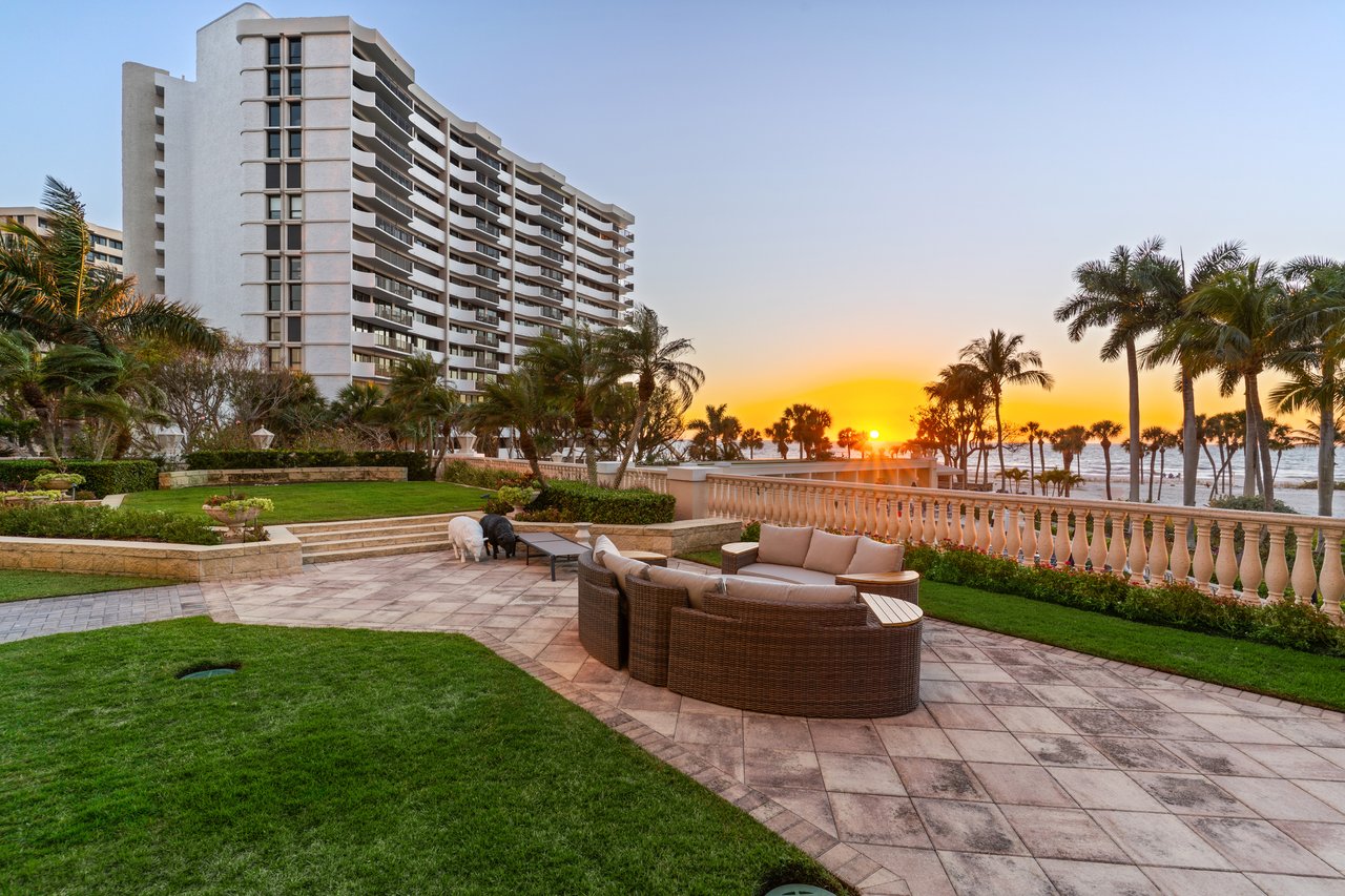 Truly one of a kind, this spectacular garden residence at The Brittany delivers an unparalleled beachfront lifestyle. Boasting sweeping southwestern exposure and breathtaking Gulf views, this exceptional offering features a nearly 8,600-square-foot private terrace overlooking the Gulf — an extraordinarily rare outdoor retreat that lives like a private beachfront estate. Designed for grand-scale entertaining and serene coastal living alike, the expansive terrace creates a seamless indoor-outdoor experience rarely found in high-rise residences.