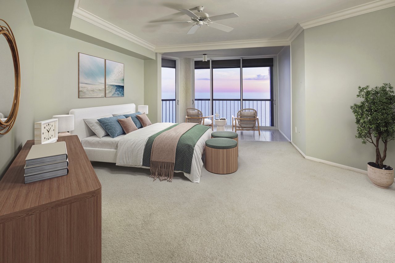 Ideally located on the south side of the highly sought-after Le Parc, this direct beachfront condominium offers spectacular bay and Gulf views from nearly every room. At the perfect height, the 9th floor allows for a connection to the sand while also being high enough to enjoy the city lights of the bay and beyond. With over 2,500 sq. ft. of living space, 2 bedrooms plus a den, and 2 and a half baths, the easy-flowing floor plan will have both residents and guests feeling right at home. Le Parc residents enjoy a pet-friendly atmosphere, a resort-style pool, a covered spa area, a fitness room with updated equipment, 2 covered parking spaces, and so much more.