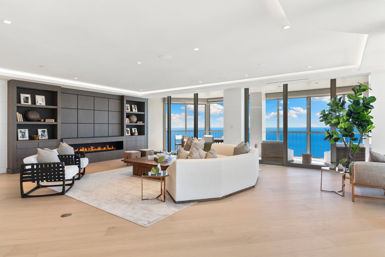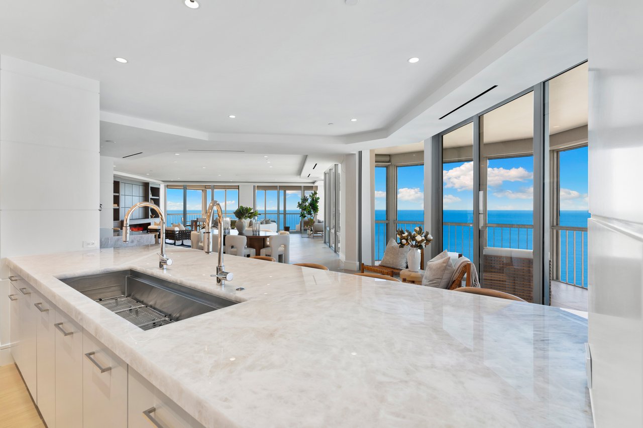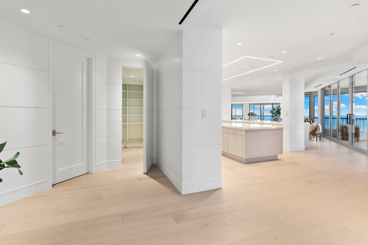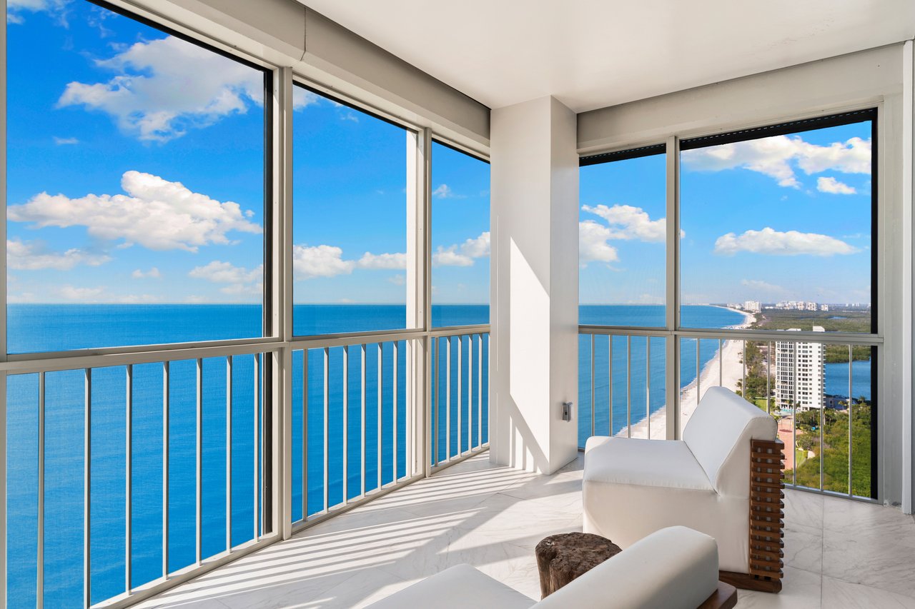 Set high above the turquoise waters of the Gulf, with sweeping vistas stretching along the crystalline coastline, the Le Parc Penthouse offers a rare combination of scale, sophistication, and comfort. Arrival begins through a newly renovated elevator lobby opening to walnut flooring laid in an elegant herringbone pattern—mirrored in the ceiling detailing—immediately setting the tone for the refined interiors beyond. Upon entry, the home opens to awe-inspiring views framed by walls of floor-to-ceiling glass, allowing natural light to pour in and the Gulf to take center stage. Designed for effortless entertaining, the stunning kitchen features dual Cristallo quartzite islands, sleek custom cabinetry with walnut interiors, and a seamless connection to the dining area and serving bar, highlighted by a dramatic feature wall and dual Sub-Zero wine storage. Living like a single-family residence in the sky, this expansive penthouse offers five en-suite bedrooms, a private study, and a thoughtfully placed utility room providing exceptional convenience and storage. The primary suite is both spacious and serene, ideally positioned with direct access to the study and showcasing breathtaking views. Its resort-like bath is equally impressive, featuring dual vanities, a generous walk-in shower, and exceptional closet space. Guest accommodations are equally well appointed, including a second primary suite with a soaking tub perfectly positioned to capture northern views, as well as two additional outdoor spaces, one an open-air balcony overlooking the tranquil bay and Park Shore beyond. This is penthouse living at its finest—timeless materials, generous proportions, and unparalleled views—set within one of Naples’ most coveted Gulf-front addresses.