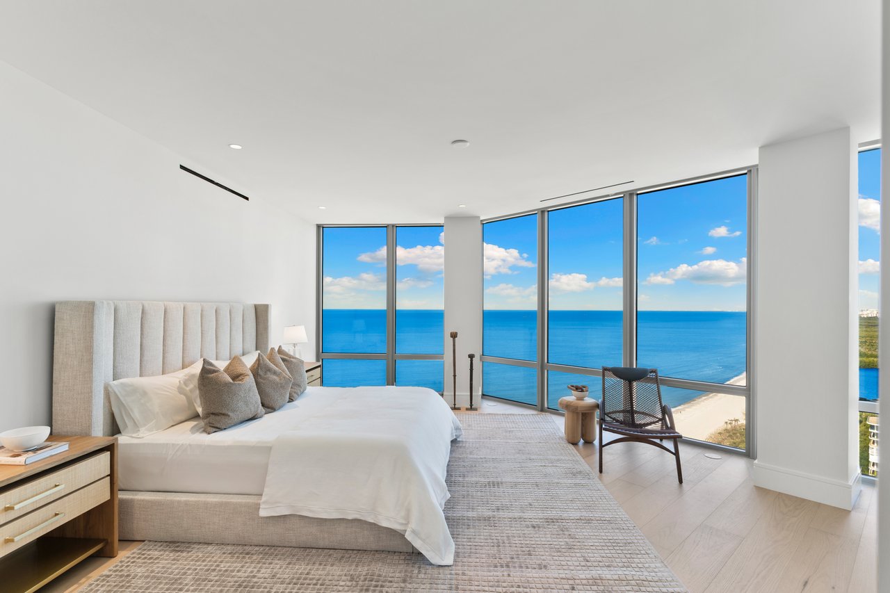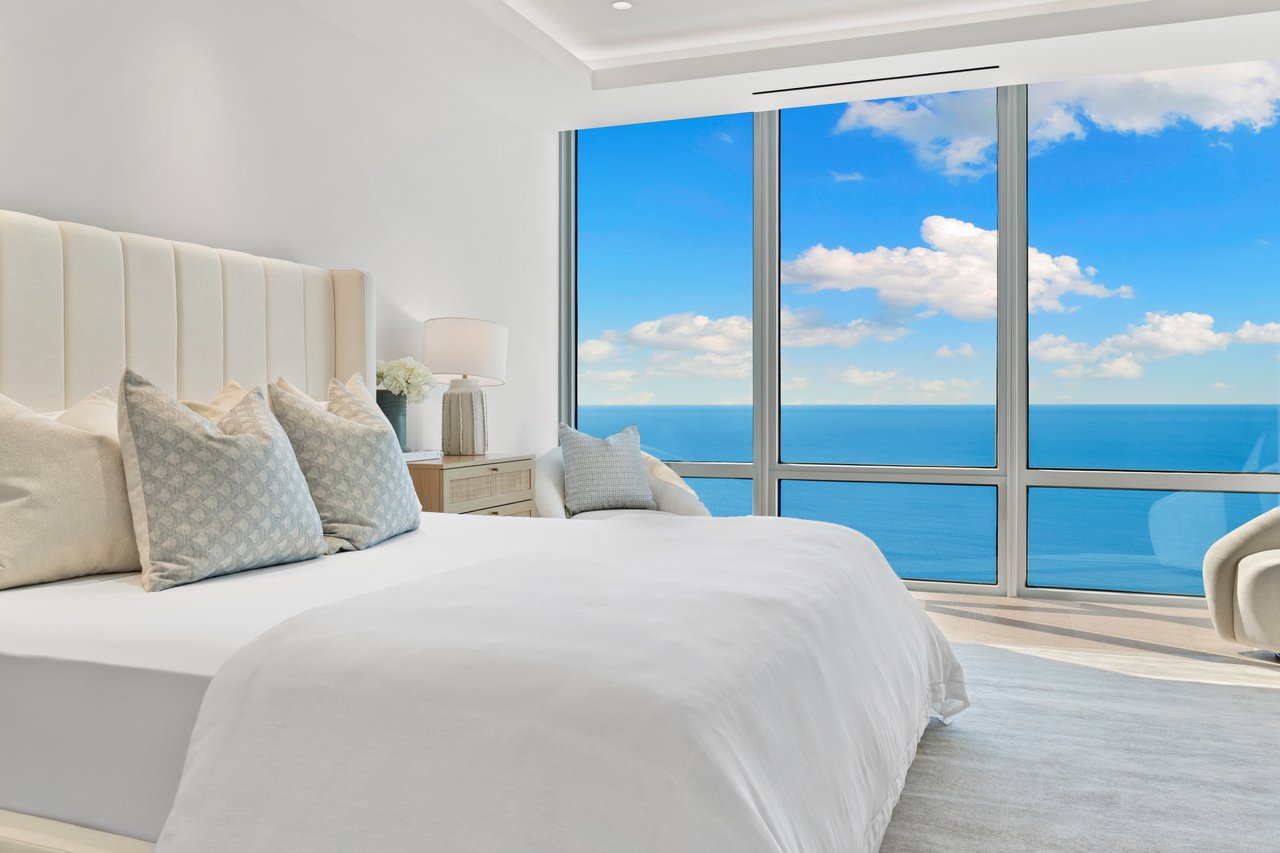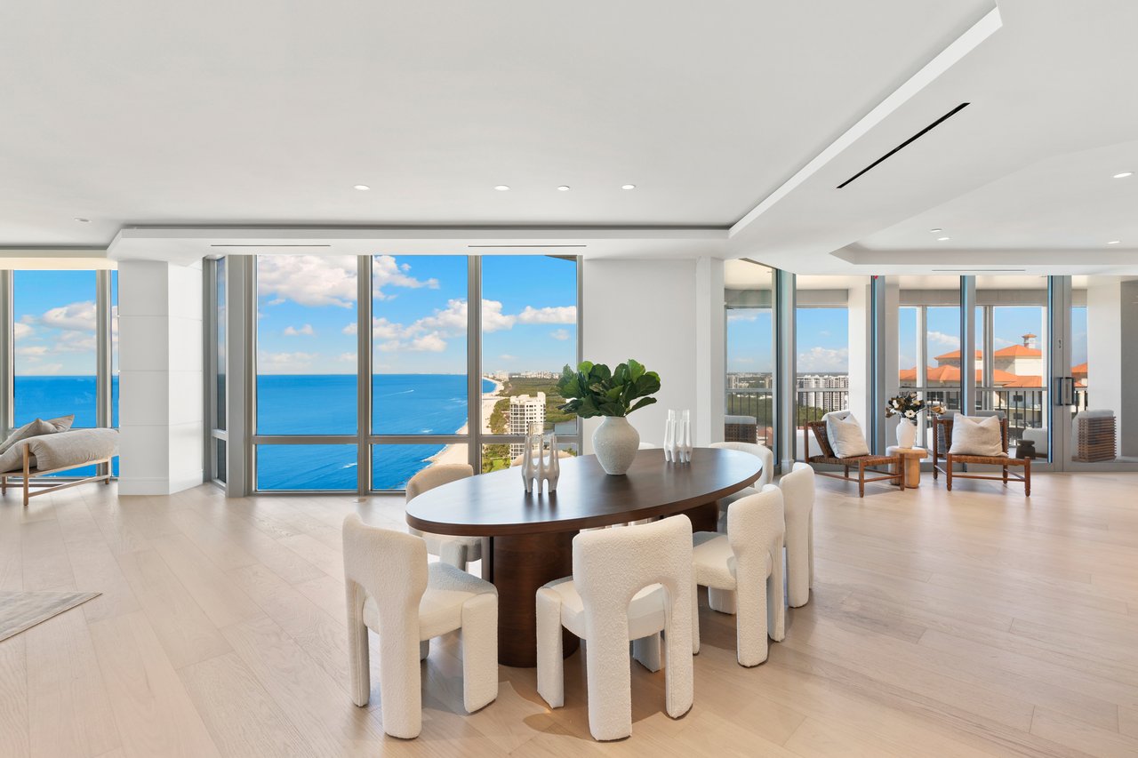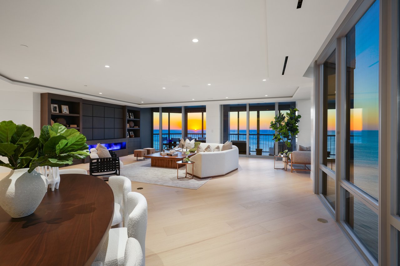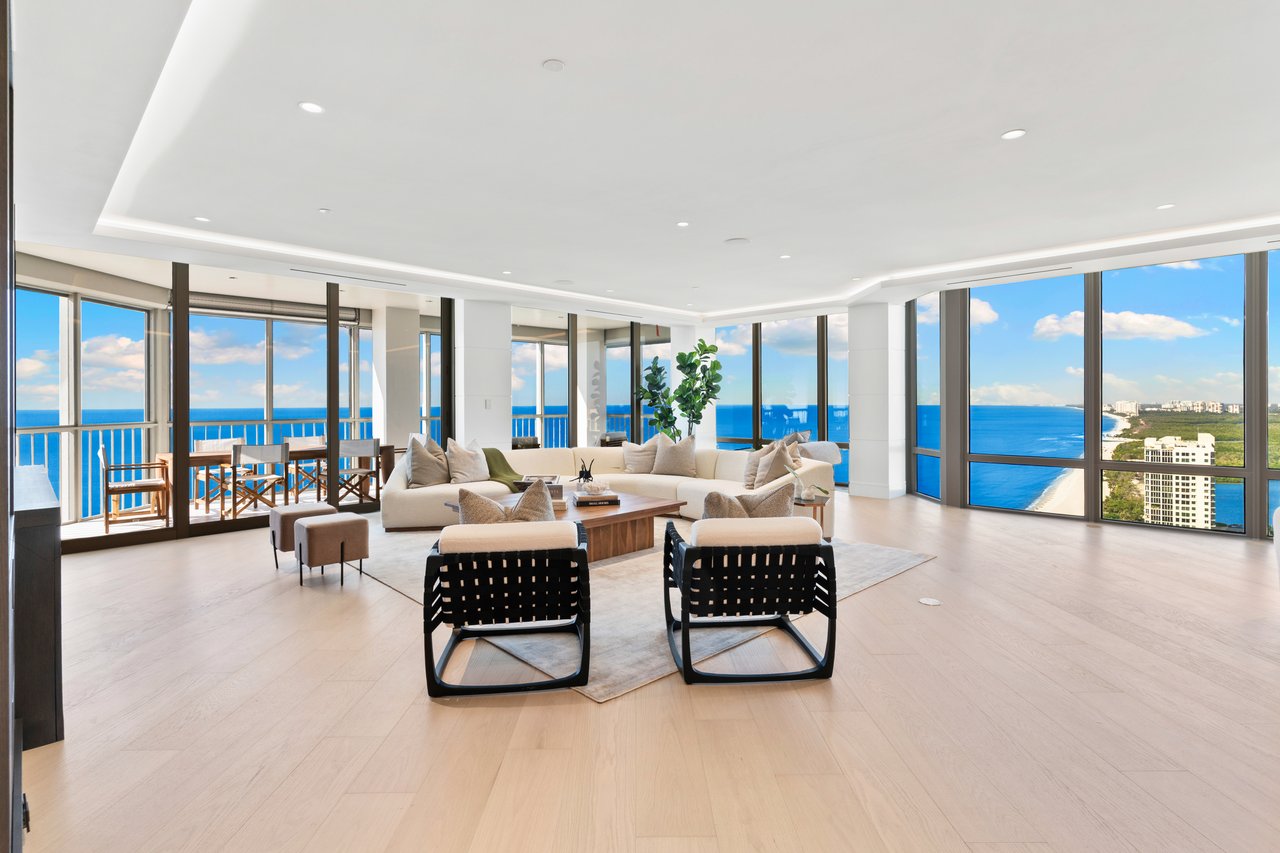 Set high above the turquoise waters of the Gulf, with sweeping vistas stretching along the crystalline coastline, the Le Parc Penthouse offers a rare combination of scale, sophistication, and comfort. Arrival begins through a newly renovated elevator lobby opening to walnut flooring laid in an elegant herringbone pattern—mirrored in the ceiling detailing—immediately setting the tone for the refined interiors beyond. Upon entry, the home opens to awe-inspiring views framed by walls of floor-to-ceiling glass, allowing natural light to pour in and the Gulf to take center stage. Designed for effortless entertaining, the stunning kitchen features dual Cristallo quartzite islands, sleek custom cabinetry with walnut interiors, and a seamless connection to the dining area and serving bar, highlighted by a dramatic feature wall and dual Sub-Zero wine storage. Living like a single-family residence in the sky, this expansive penthouse offers five en-suite bedrooms, a private study, and a thoughtfully placed utility room providing exceptional convenience and storage. The primary suite is both spacious and serene, ideally positioned with direct access to the study and showcasing breathtaking views. Its resort-like bath is equally impressive, featuring dual vanities, a generous walk-in shower, and exceptional closet space. Guest accommodations are equally well appointed, including a second primary suite with a soaking tub perfectly positioned to capture northern views, as well as two additional outdoor spaces, one an open-air balcony overlooking the tranquil bay and Park Shore beyond. This is penthouse living at its finest—timeless materials, generous proportions, and unparalleled views—set within one of Naples’ most coveted Gulf-front addresses.