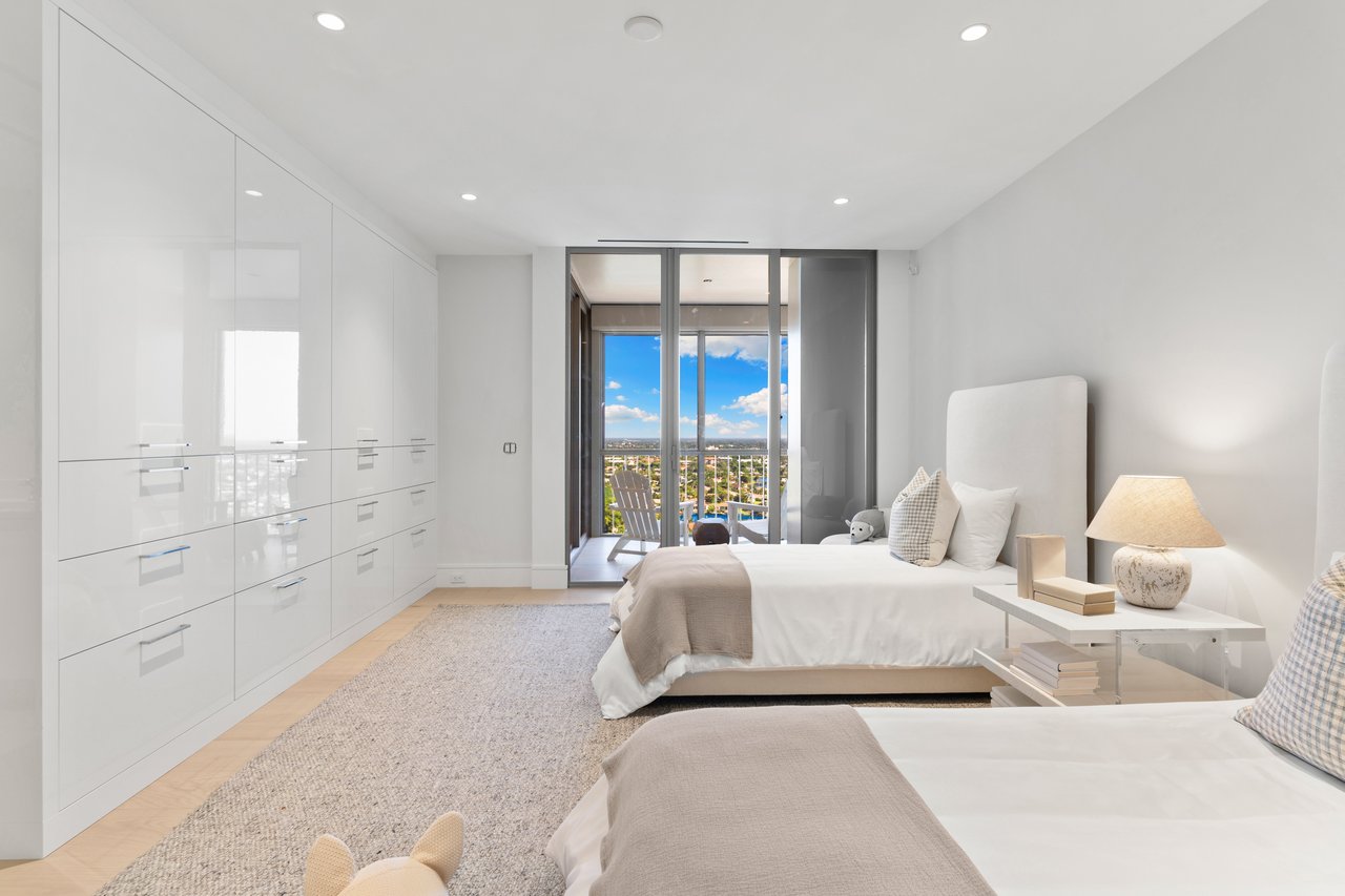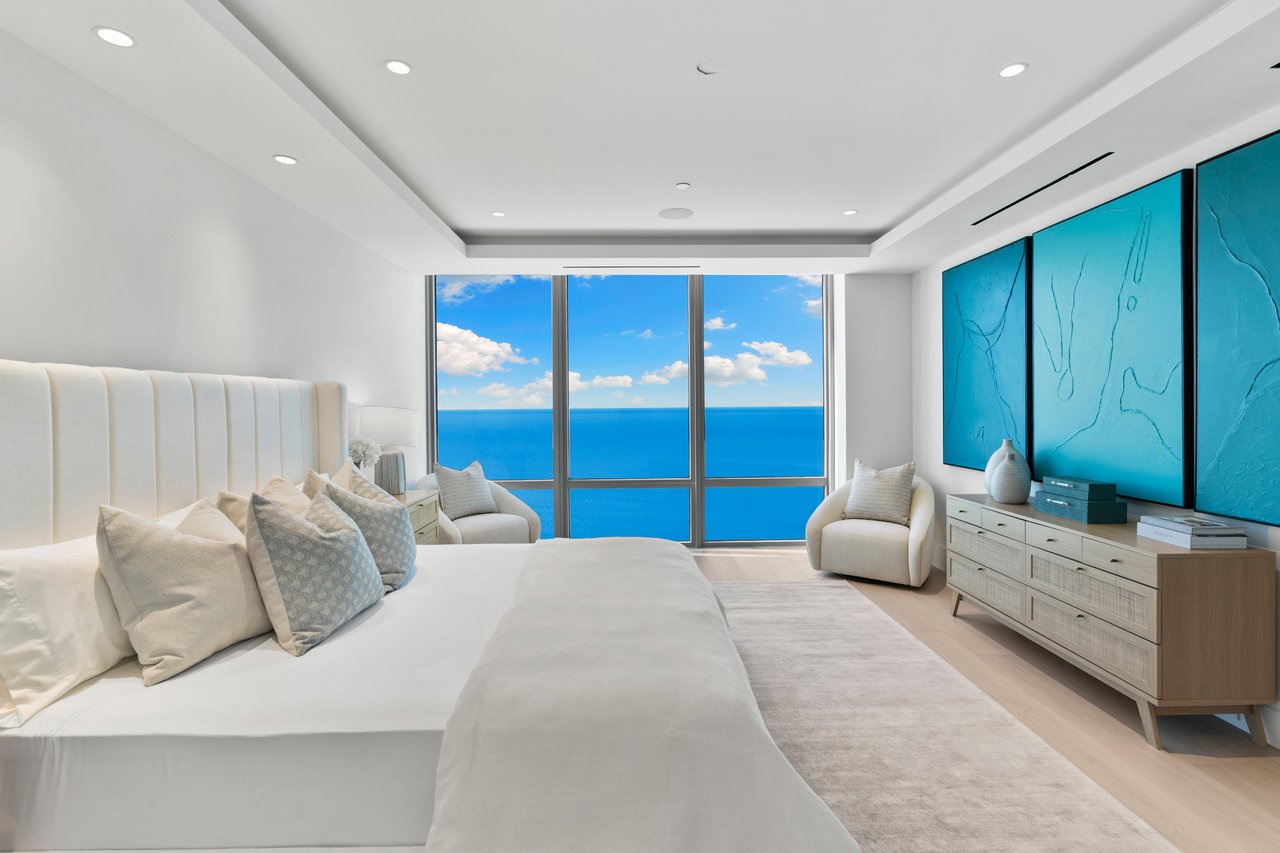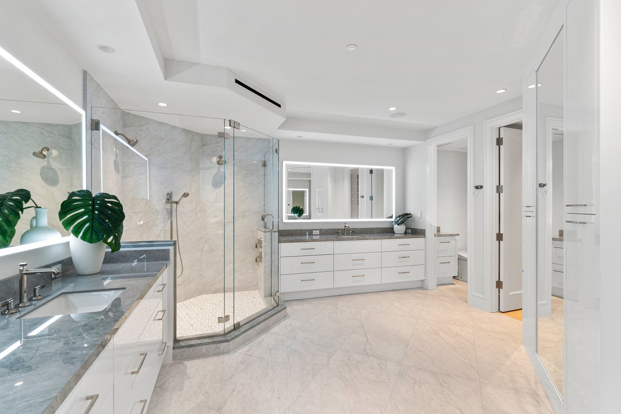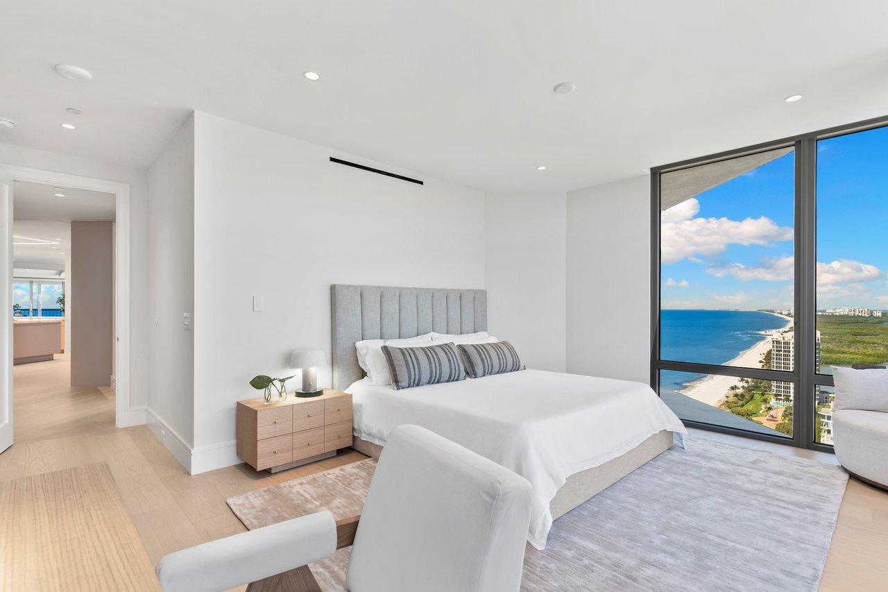 Set high above the turquoise waters of the Gulf, with sweeping vistas stretching along the crystalline coastline, the Le Parc Penthouse offers a rare combination of scale, sophistication, and comfort. Arrival begins through a newly renovated elevator lobby opening to walnut flooring laid in an elegant herringbone pattern—mirrored in the ceiling detailing—immediately setting the tone for the refined interiors beyond. Upon entry, the home opens to awe-inspiring views framed by walls of floor-to-ceiling glass, allowing natural light to pour in and the Gulf to take center stage. Designed for effortless entertaining, the stunning kitchen features dual Cristallo quartzite islands, sleek custom cabinetry with walnut interiors, and a seamless connection to the dining area and serving bar, highlighted by a dramatic feature wall and dual Sub-Zero wine storage. Living like a single-family residence in the sky, this expansive penthouse offers five en-suite bedrooms, a private study, and a thoughtfully placed utility room providing exceptional convenience and storage. The primary suite is both spacious and serene, ideally positioned with direct access to the study and showcasing breathtaking views. Its resort-like bath is equally impressive, featuring dual vanities, a generous walk-in shower, and exceptional closet space. Guest accommodations are equally well appointed, including a second primary suite with a soaking tub perfectly positioned to capture northern views, as well as two additional outdoor spaces, one an open-air balcony overlooking the tranquil bay and Park Shore beyond. This is penthouse living at its finest—timeless materials, generous proportions, and unparalleled views—set within one of Naples’ most coveted Gulf-front addresses.