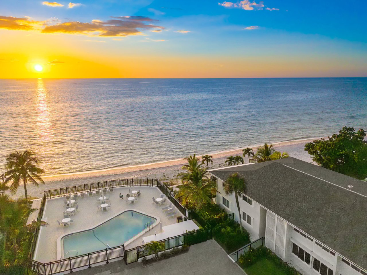 A rare opportunity to own the best of Florida’s Paradise Coast. This 3-bedroom, 2-bath beachfront condo feels like living in a beach house, with its panoramic Gulf views. Ideally located on the south end of Coquina Sands, Surfside Club is nestled between the Four Seasons Naples Beach Club and the new condos at Olana Naples Residences, making this an investment opportunity like no other. Enjoy your morning coffee on the patio while watching dolphins swim by, or take in a spectacular Naples sunset. Renovated and move-in-ready, it features luxurious European White Oak floors, new impact-resistant sliders, a spacious custom kitchen with quartz counters, a wine bar, a pantry, and much more. Natural light streams into the open-plan living areas, creating a warm ambiance during the day and a stunning sunset backdrop in the evening. The spacious primary bedroom boasts incredible views, a custom-designed closet, and a light and bright bath with dual sinks and a marble shower. Guests will enjoy two comfortable suites that share a well-appointed bath, providing a private and inviting retreat. Live the luxurious and active lifestyle, with the crystalline coast just steps away and a myriad of shops and restaurants on 5th Avenue South and historic 3rd Street South in close proximity. Experience the ultimate in beachfront living at Surfside Club, Naples’ dream location.