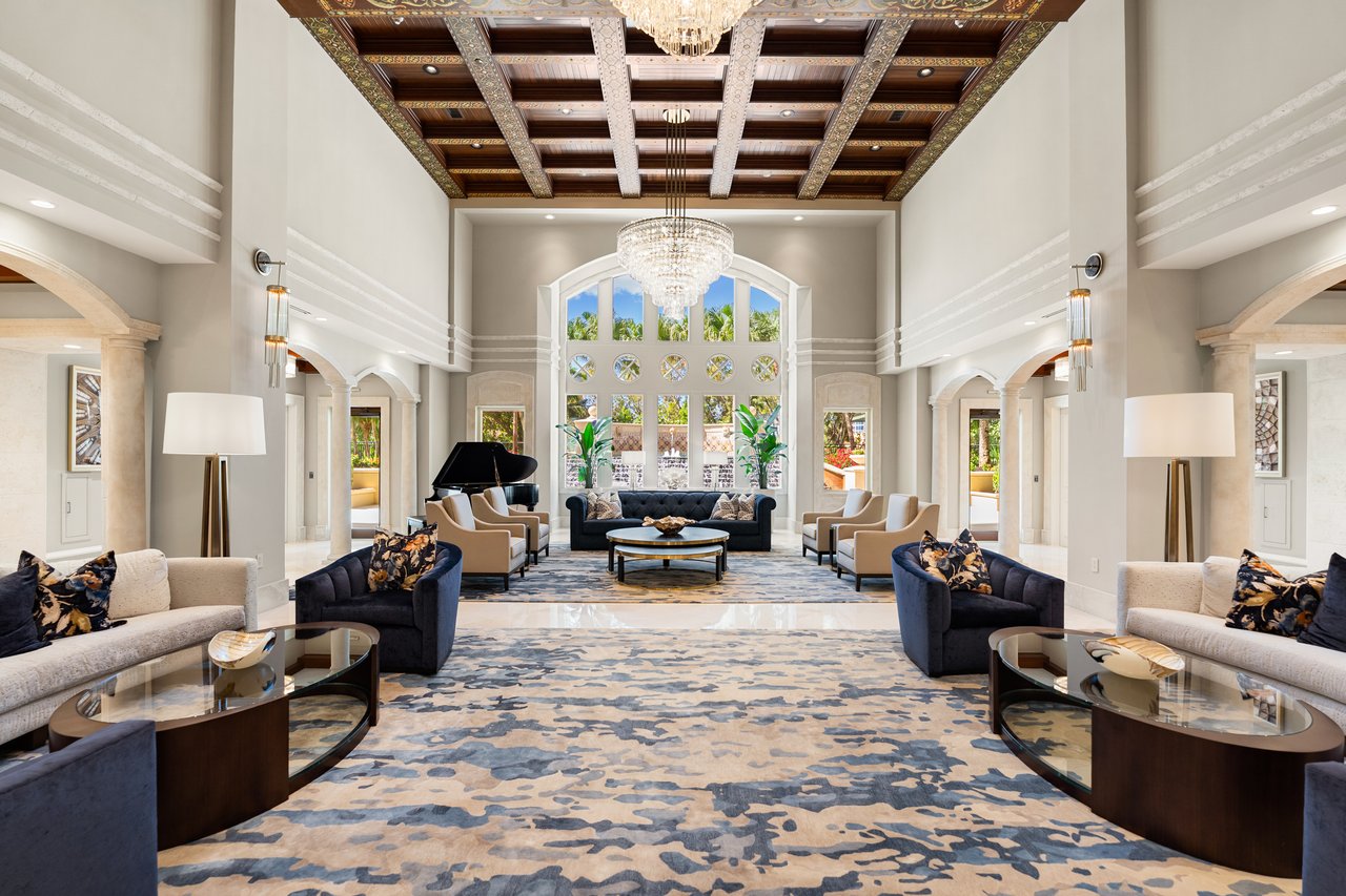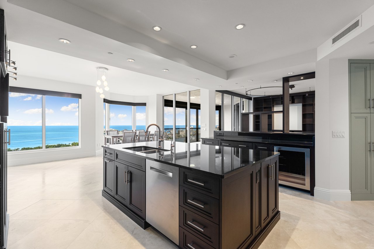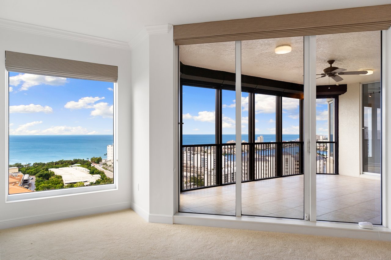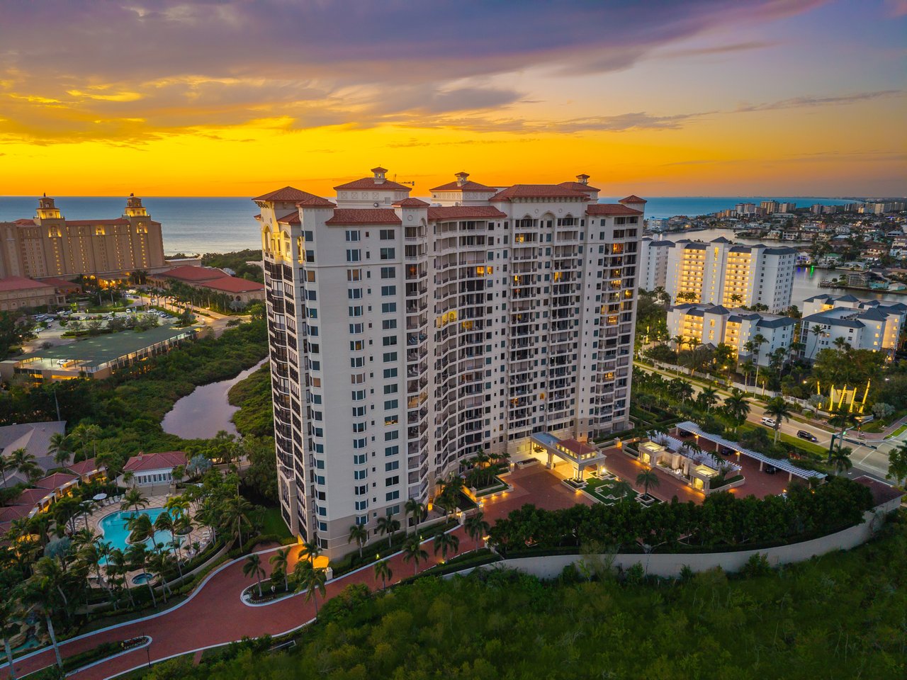 Perched atop the prestigious Trieste at Bay Colony, this extraordinary penthouse-level residence offers an unparalleled combination of comfort, space, and panoramic views. Encompassing over 6,800 square feet of living area, the home features four screened balconies, seven versatile bedroom spaces, a studio, and a library—providing endless opportunities to reimagine the layout or create a multigenerational family retreat. Step from your private elevator into a radiant great room where natural light and Gulf breezes set a tranquil tone. Open the sliders to enjoy the refreshing cross-breeze and seamless indoor-outdoor living. The expansive open kitchen overlooks the Gulf, creating the perfect setting for gathering with family and friends. Trieste offers world-class amenities including a resort-style pool, elegantly updated lobby areas, a state-of-the-art fitness center and a private movie theatre. As part of the exclusive Bay Colony & Pelican Bay community, residents also enjoy access to a private beach club, premier tennis facilities, brand new pickle ball facility and more. Completing this exceptional offering are four parking spaces and two storage units, ensuring the utmost convenience for your dream Naples lifestyle.