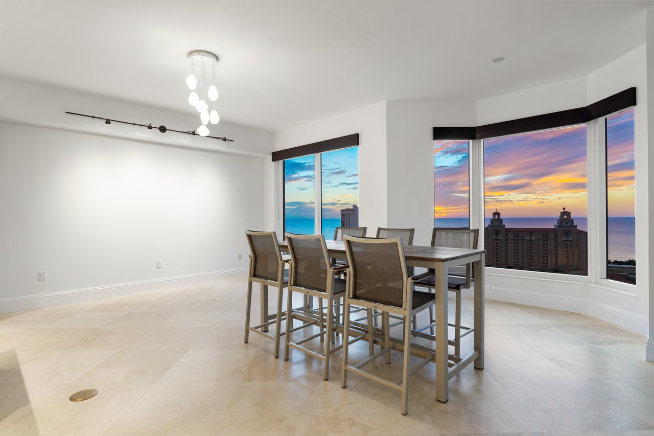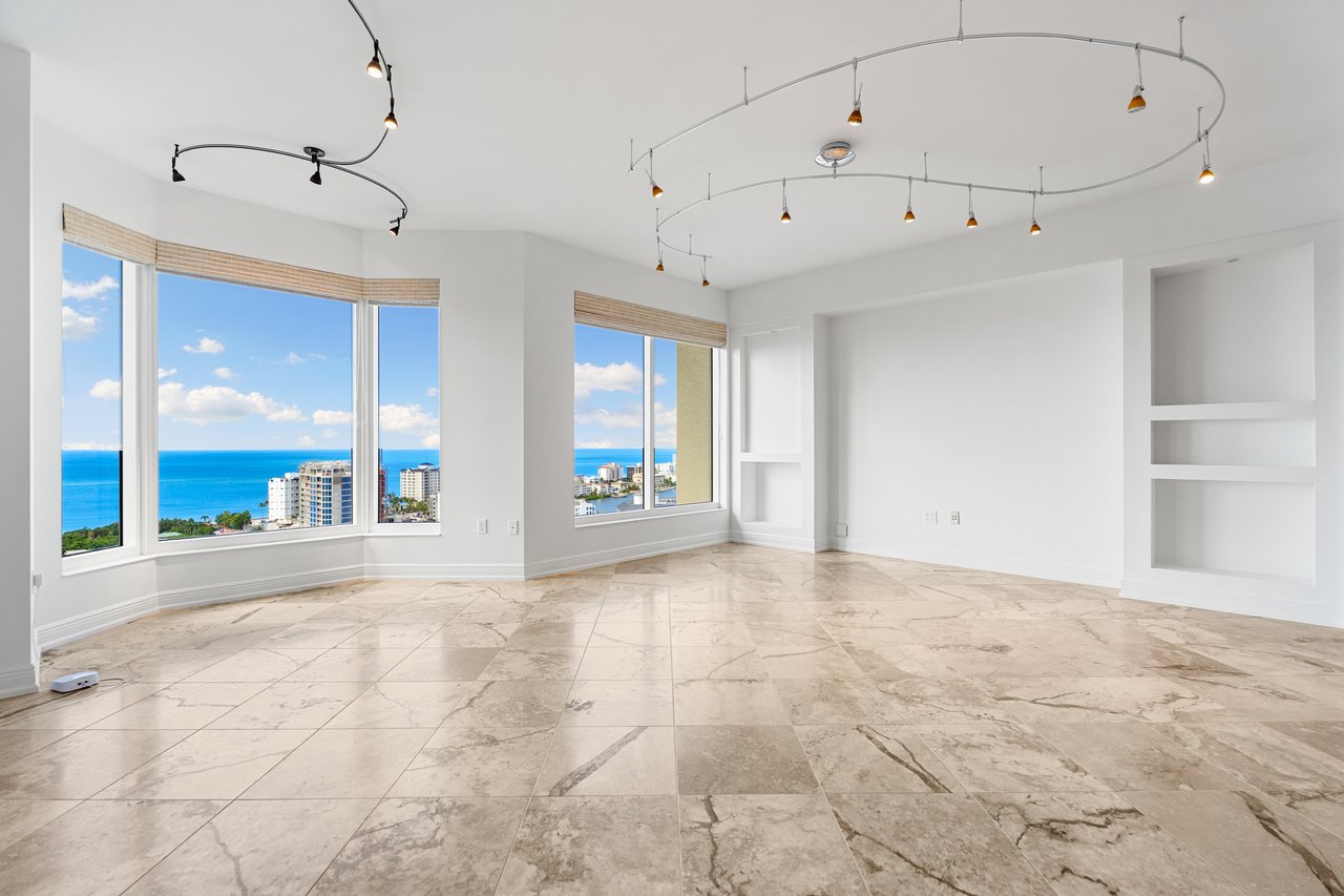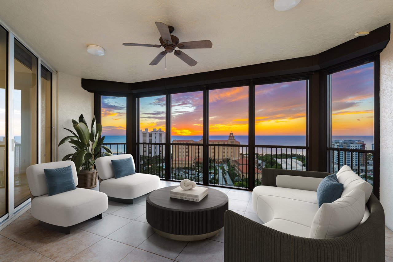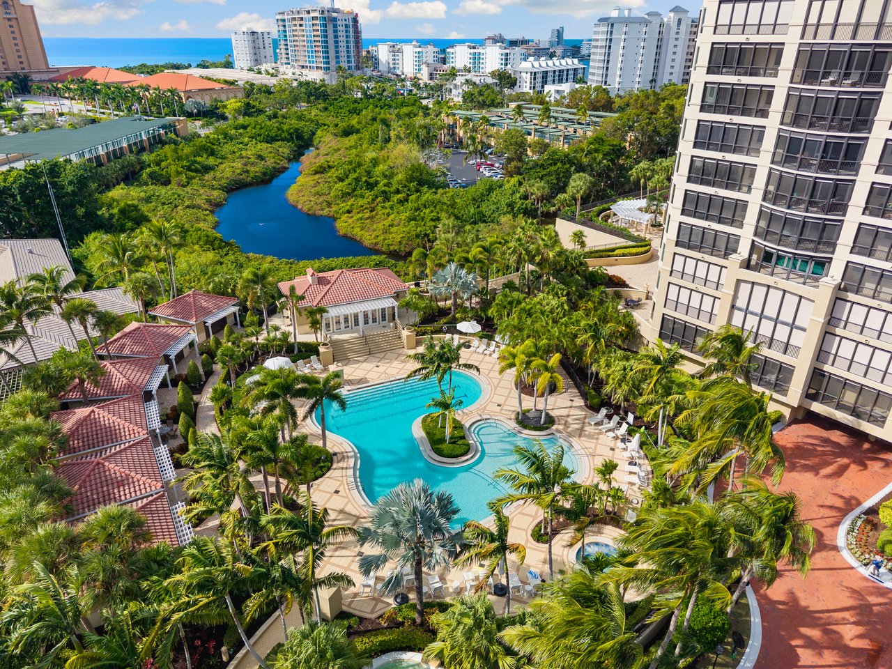 Perched atop the prestigious Trieste at Bay Colony, this extraordinary penthouse-level residence offers an unparalleled combination of comfort, space, and panoramic views. Encompassing over 6,800 square feet of living area, the home features four screened balconies, seven versatile bedroom spaces, a studio, and a library—providing endless opportunities to reimagine the layout or create a multigenerational family retreat. Step from your private elevator into a radiant great room where natural light and Gulf breezes set a tranquil tone. Open the sliders to enjoy the refreshing cross-breeze and seamless indoor-outdoor living. The expansive open kitchen overlooks the Gulf, creating the perfect setting for gathering with family and friends. Trieste offers world-class amenities including a resort-style pool, elegantly updated lobby areas, a state-of-the-art fitness center and a private movie theatre. As part of the exclusive Bay Colony & Pelican Bay community, residents also enjoy access to a private beach club, premier tennis facilities, brand new pickle ball facility and more. Completing this exceptional offering are four parking spaces and two storage units, ensuring the utmost convenience for your dream Naples lifestyle.